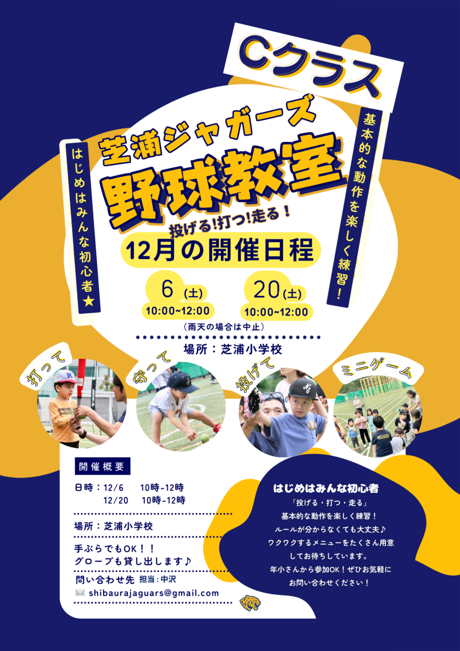 未就学児や野球初心者向けの体験クラスを月2~3回開催。ボール遊びや簡単なルールを取り入れながら、野球への興味や理解を深めていきます。とにかく何よりもまずは楽しむことが大事です!興味のある方はぜひお気軽にご参加ください!